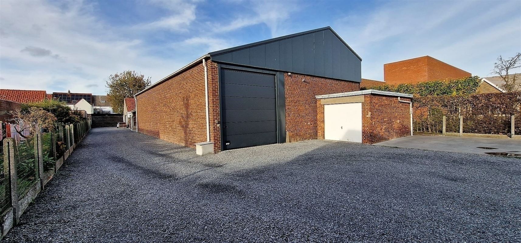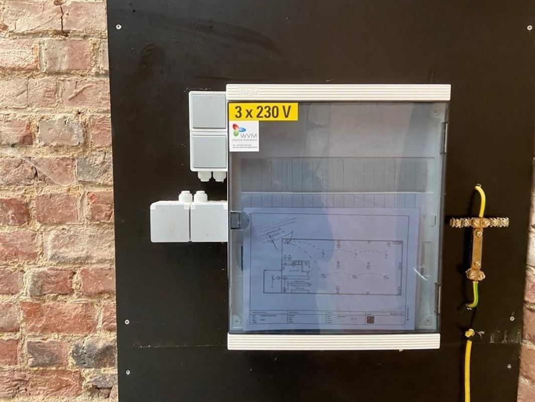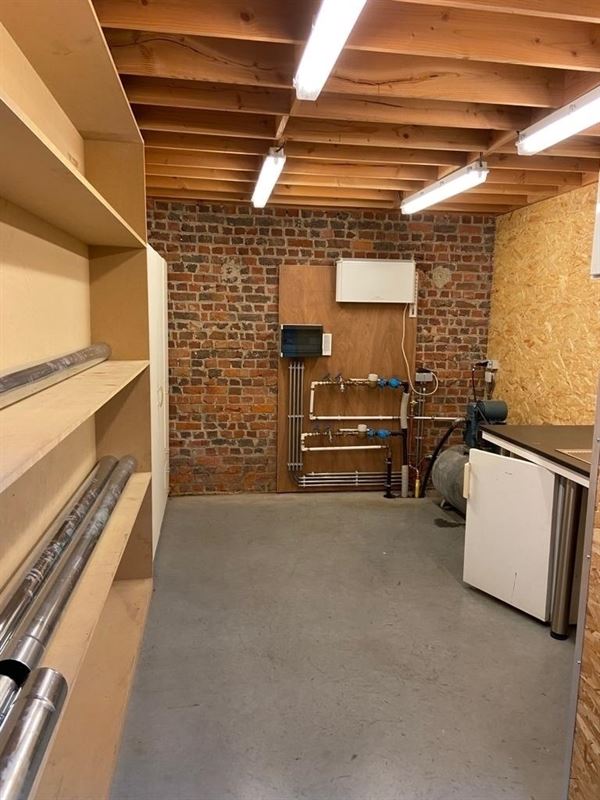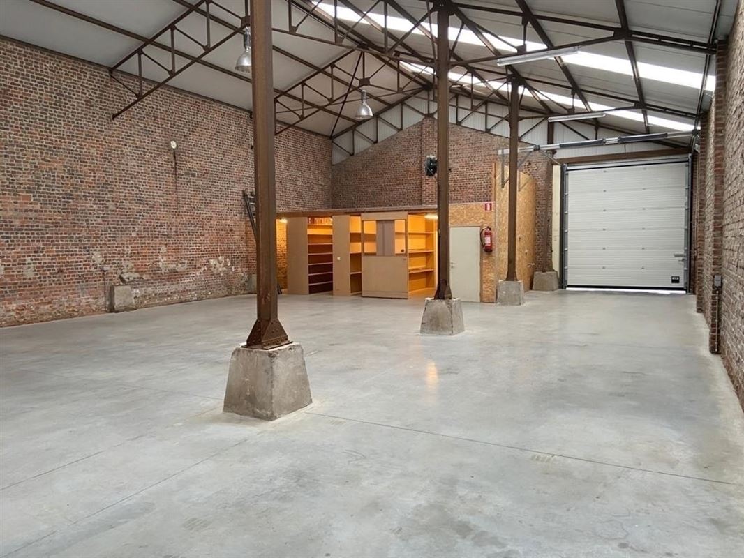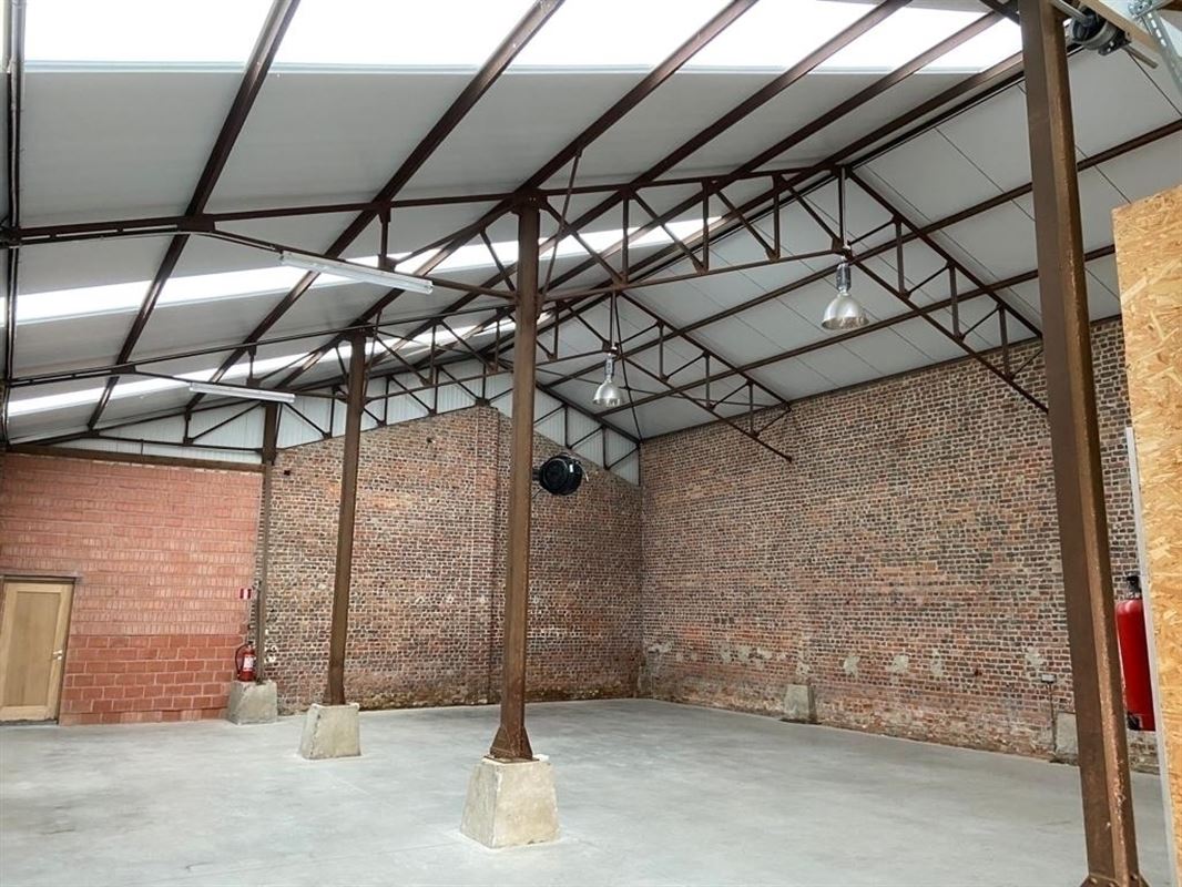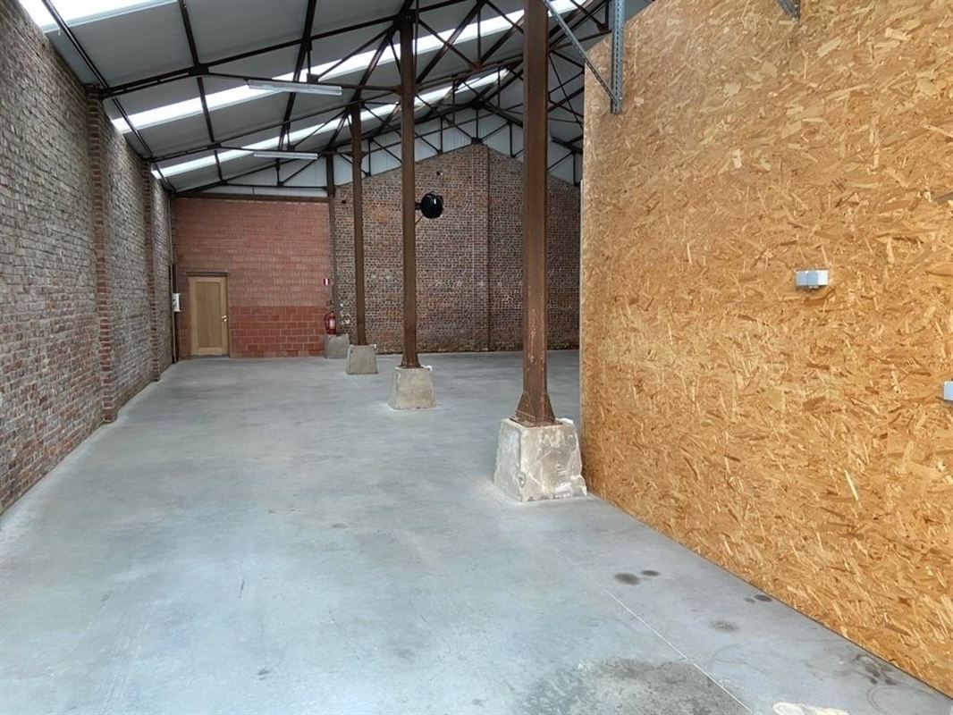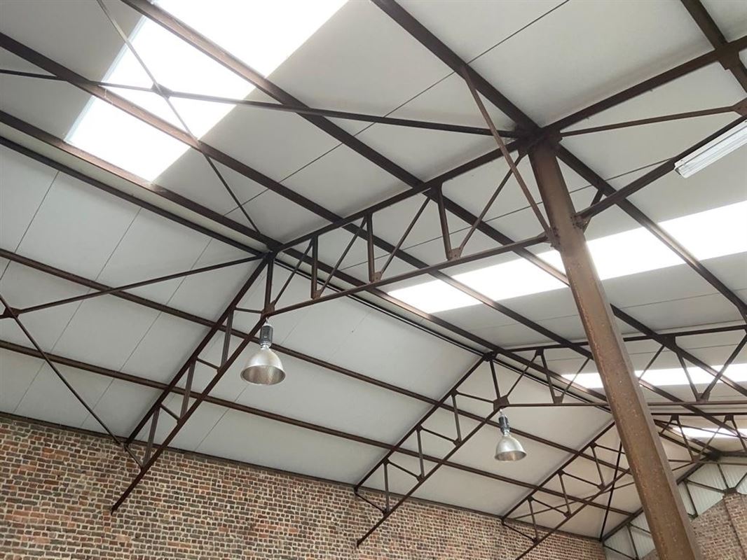 Het magazijn is voorzien van polybeton vloer, kitchenette, toilet, stockage ruimte met rekken, putwater, geïsoleerd dak met lichtstraat, … De nokhoogte is 7.30m.