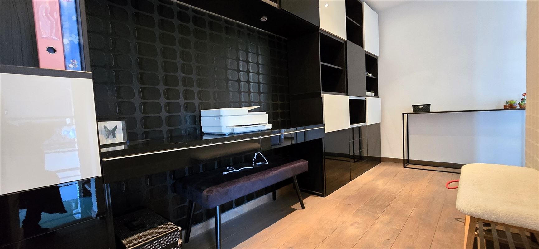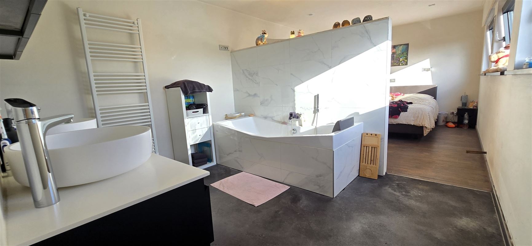 Op het eerste verdiep is een mezanine met zithoek, bureau en de grote slaapkamer met dressing en badkamer.