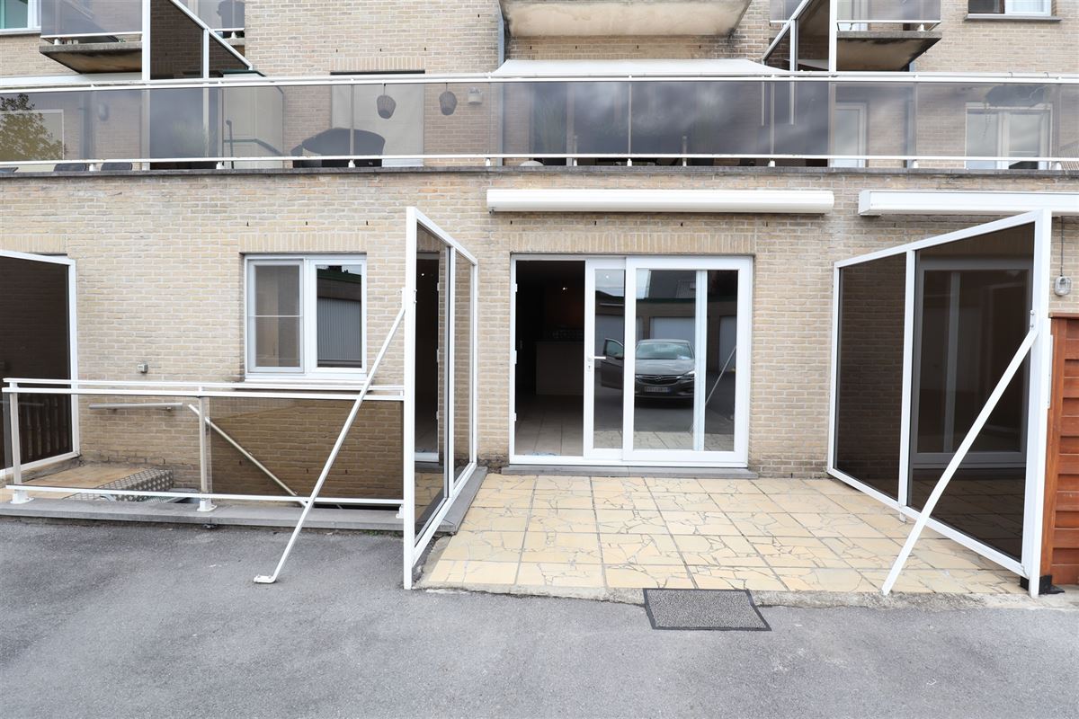 Gelijkvloers 1 slaapkamer appartement met terras en garage.